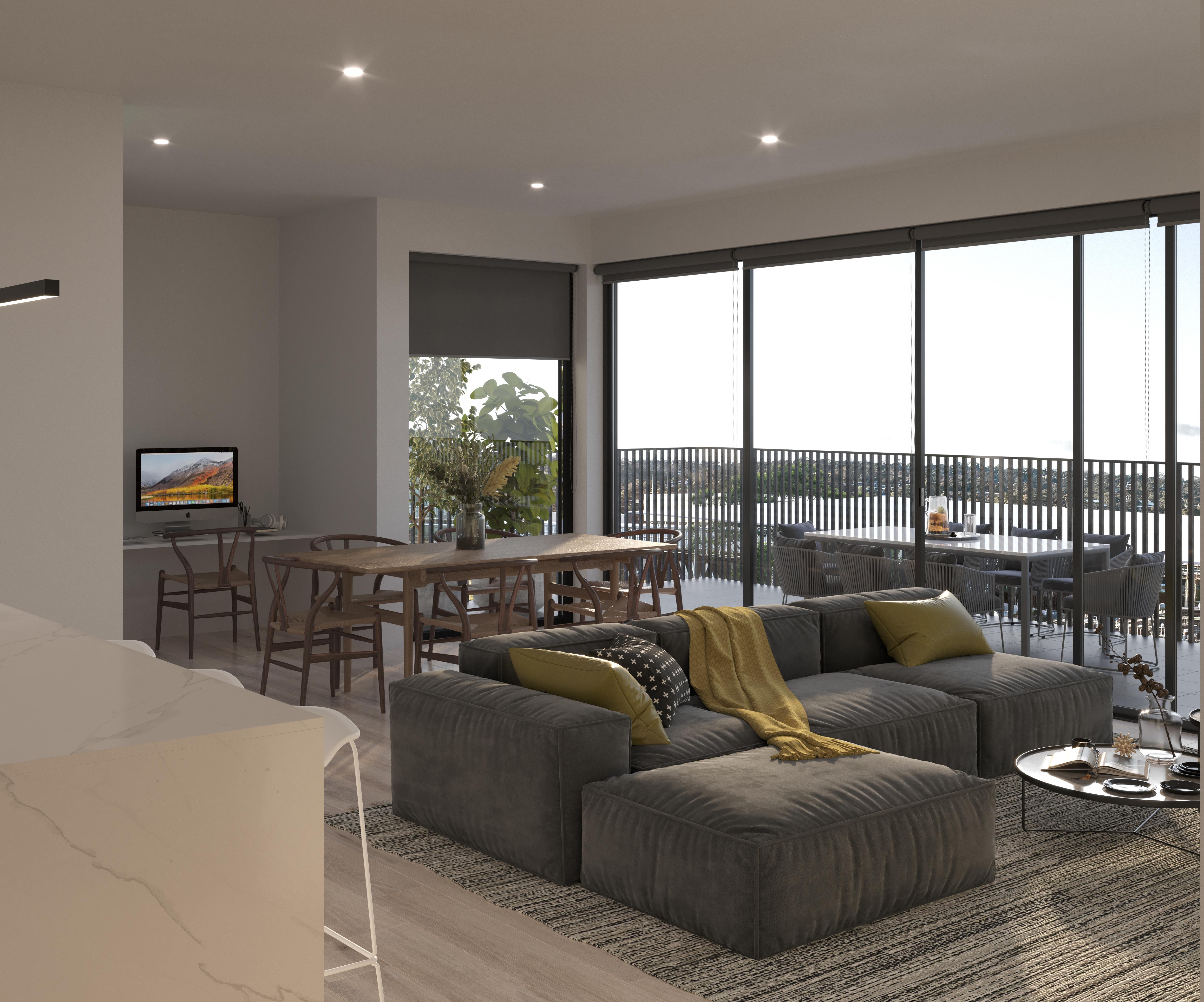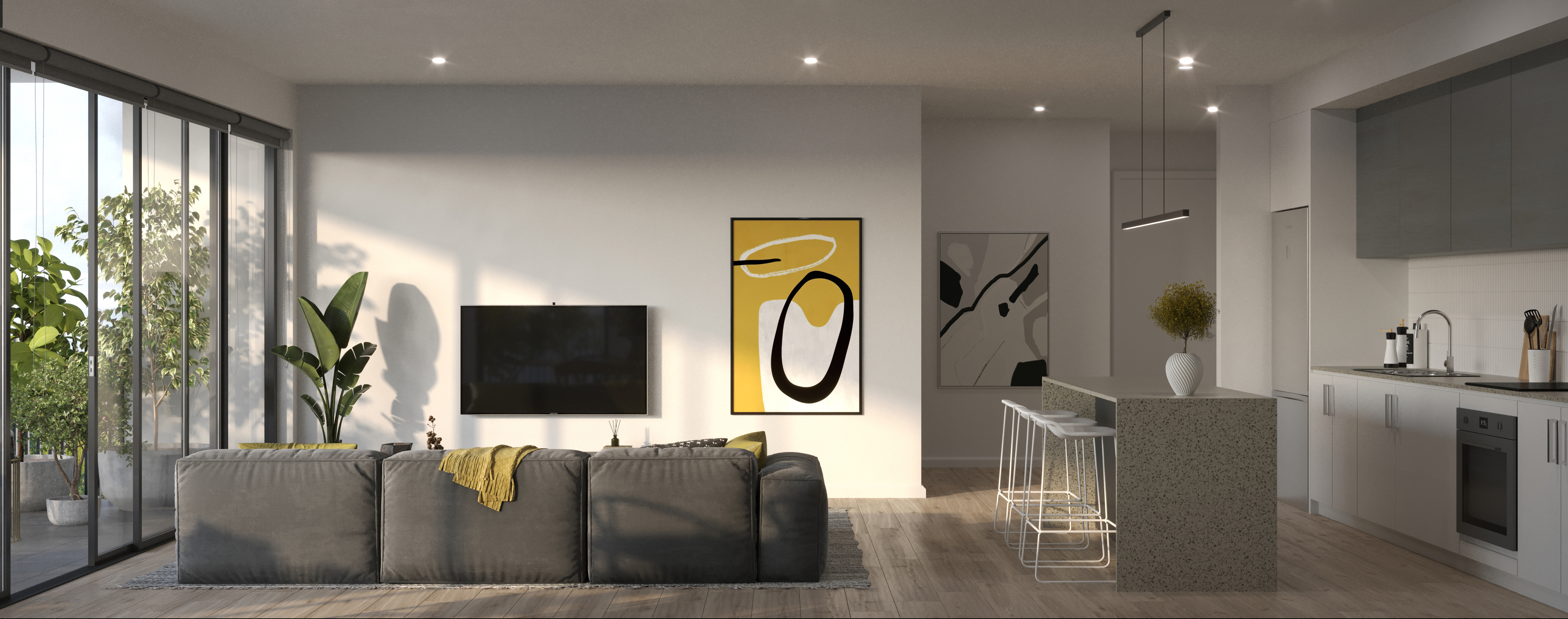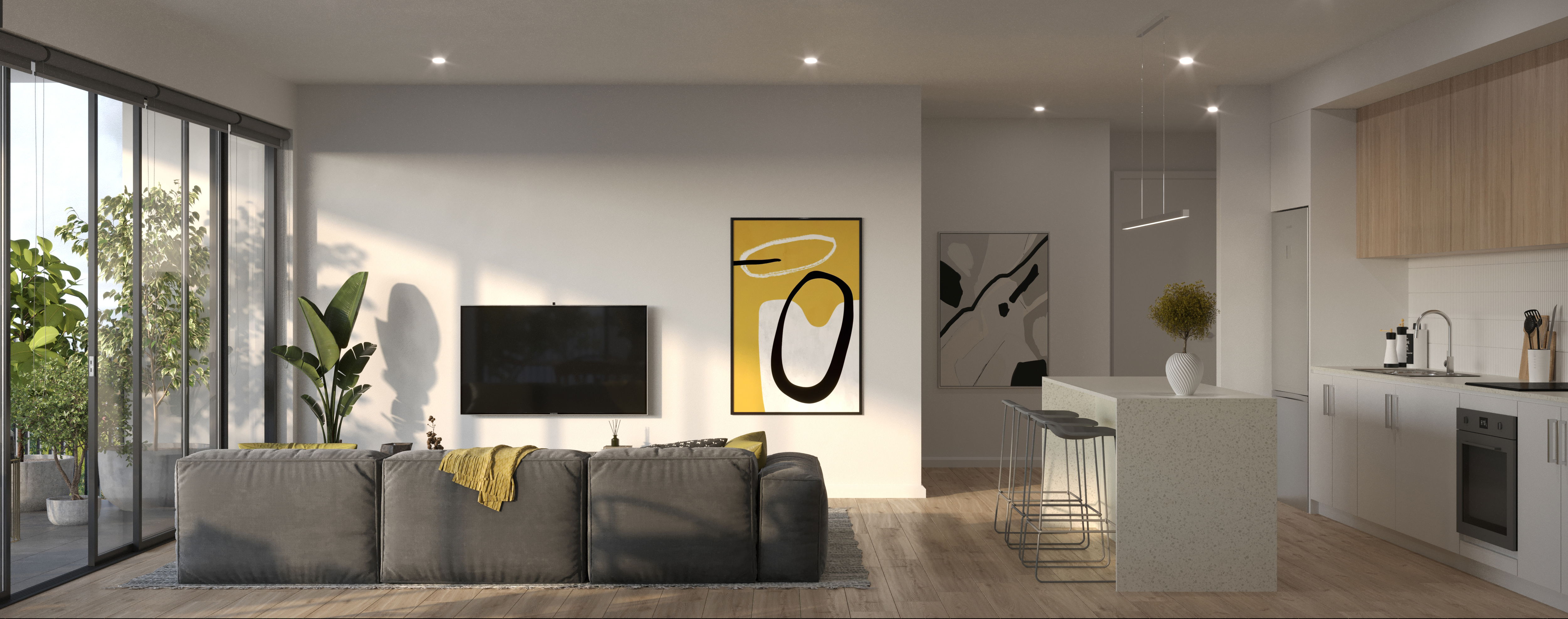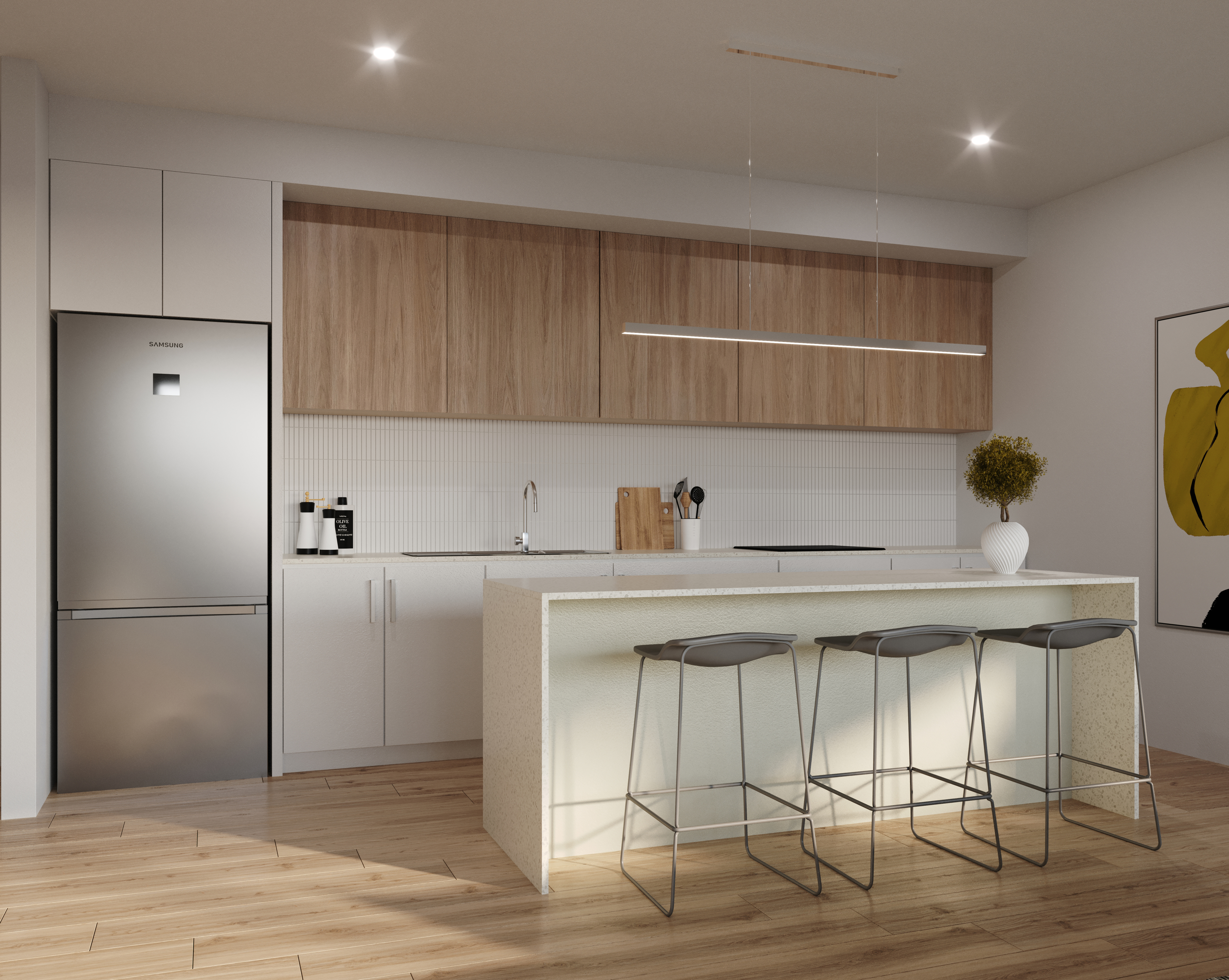 Every MODO apartment features high-quality fixtures and fittings including Smartstone benchtops, Smeg appliances, split system reverse cycle air-conditioning, built-in wardrobes, ceiling fans to bedrooms and designated car parking.