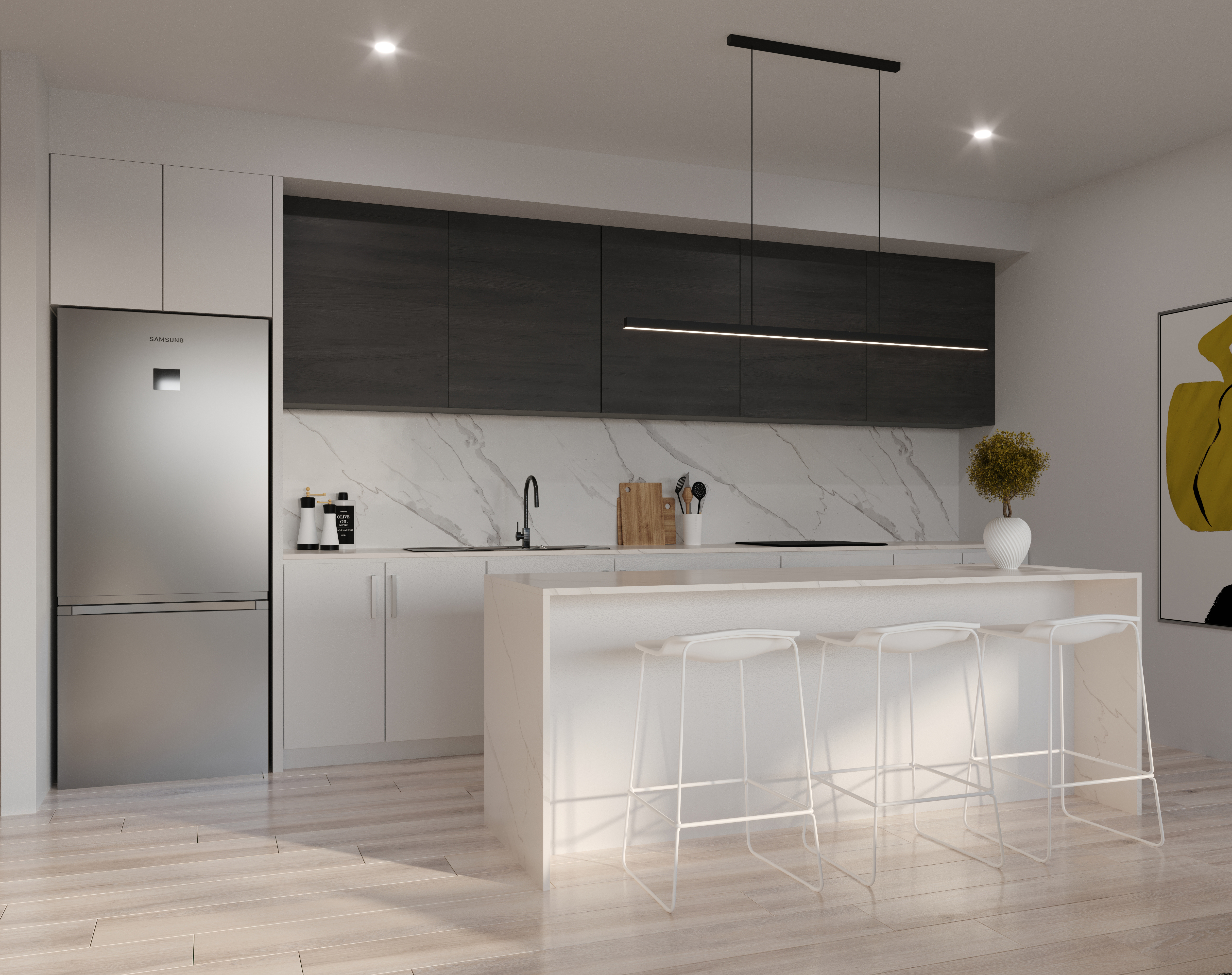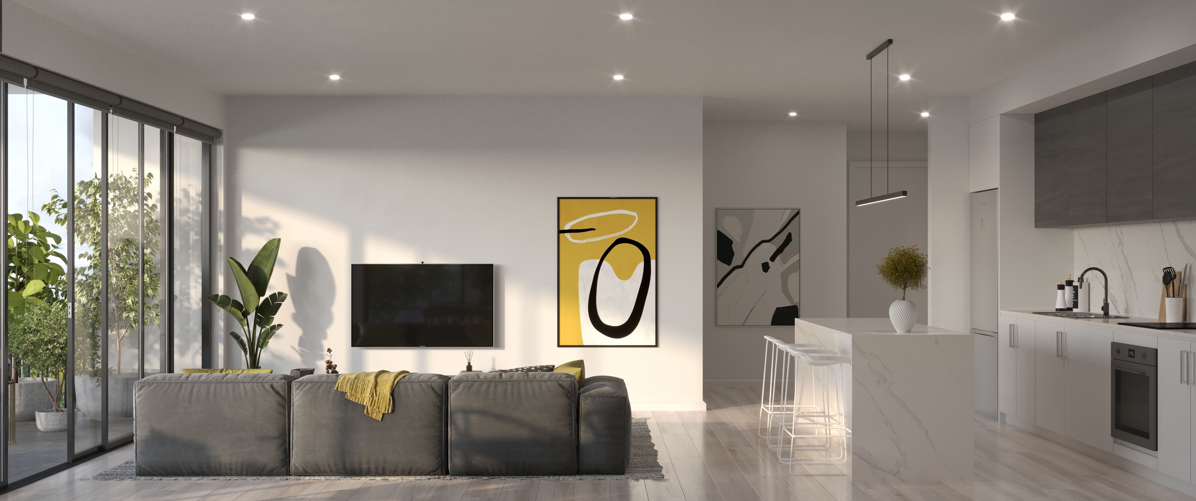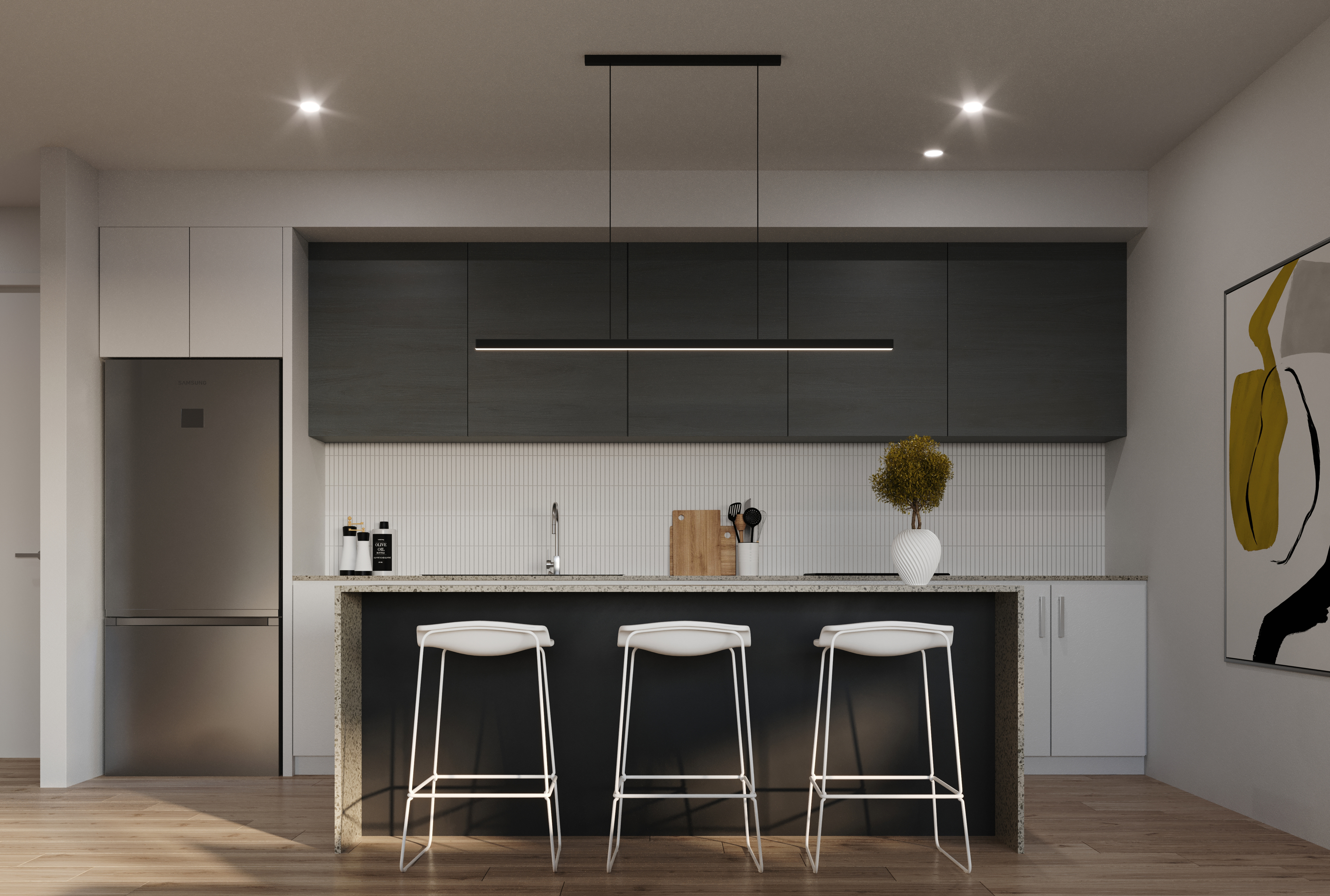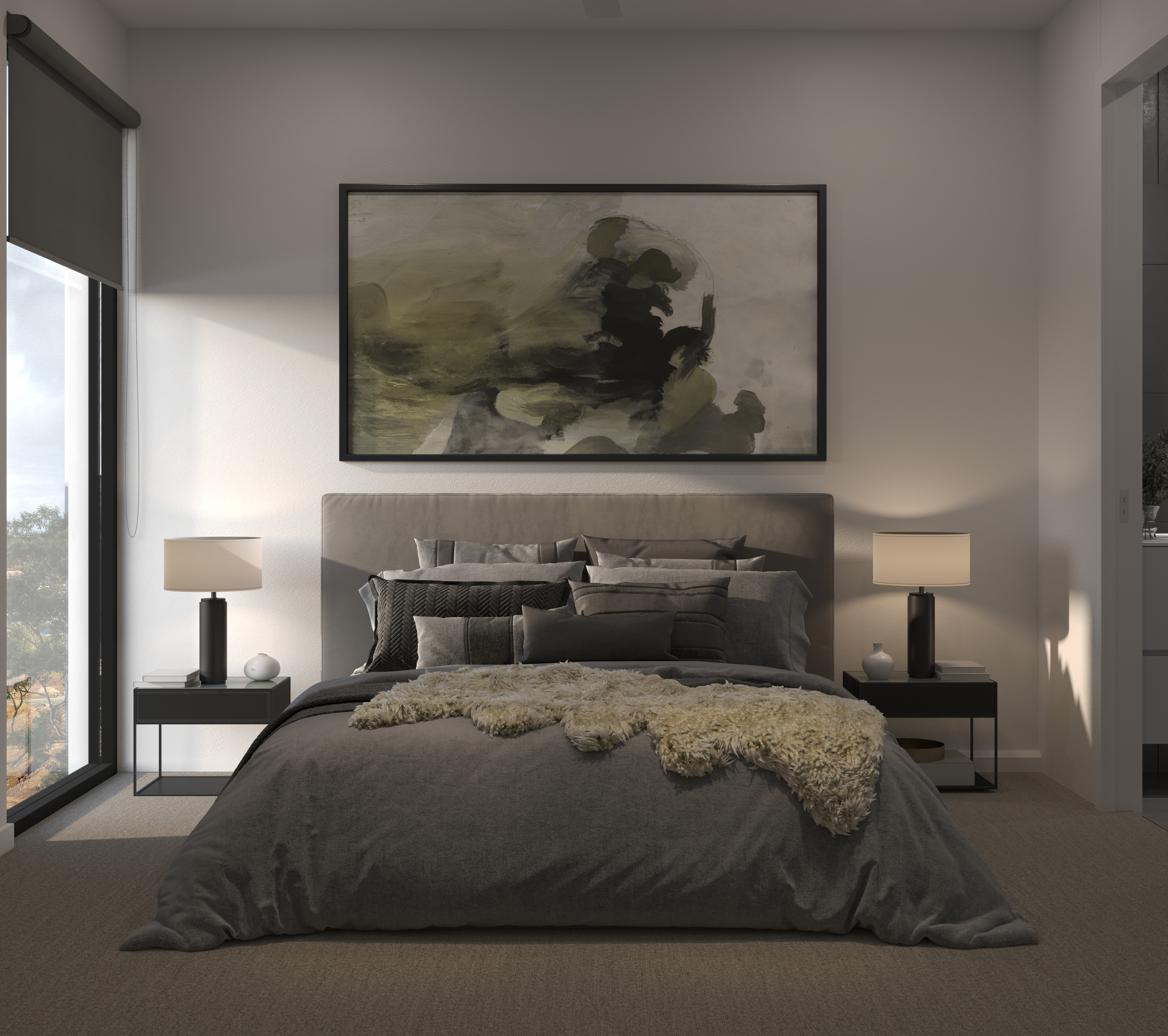Every MODO apartment features high-quality fixtures and fittings including Smartstone benchtops, Smeg appliances, split system reverse cycle air-conditioning, built-in wardrobes, ceiling fans to bedrooms and designated car parking.