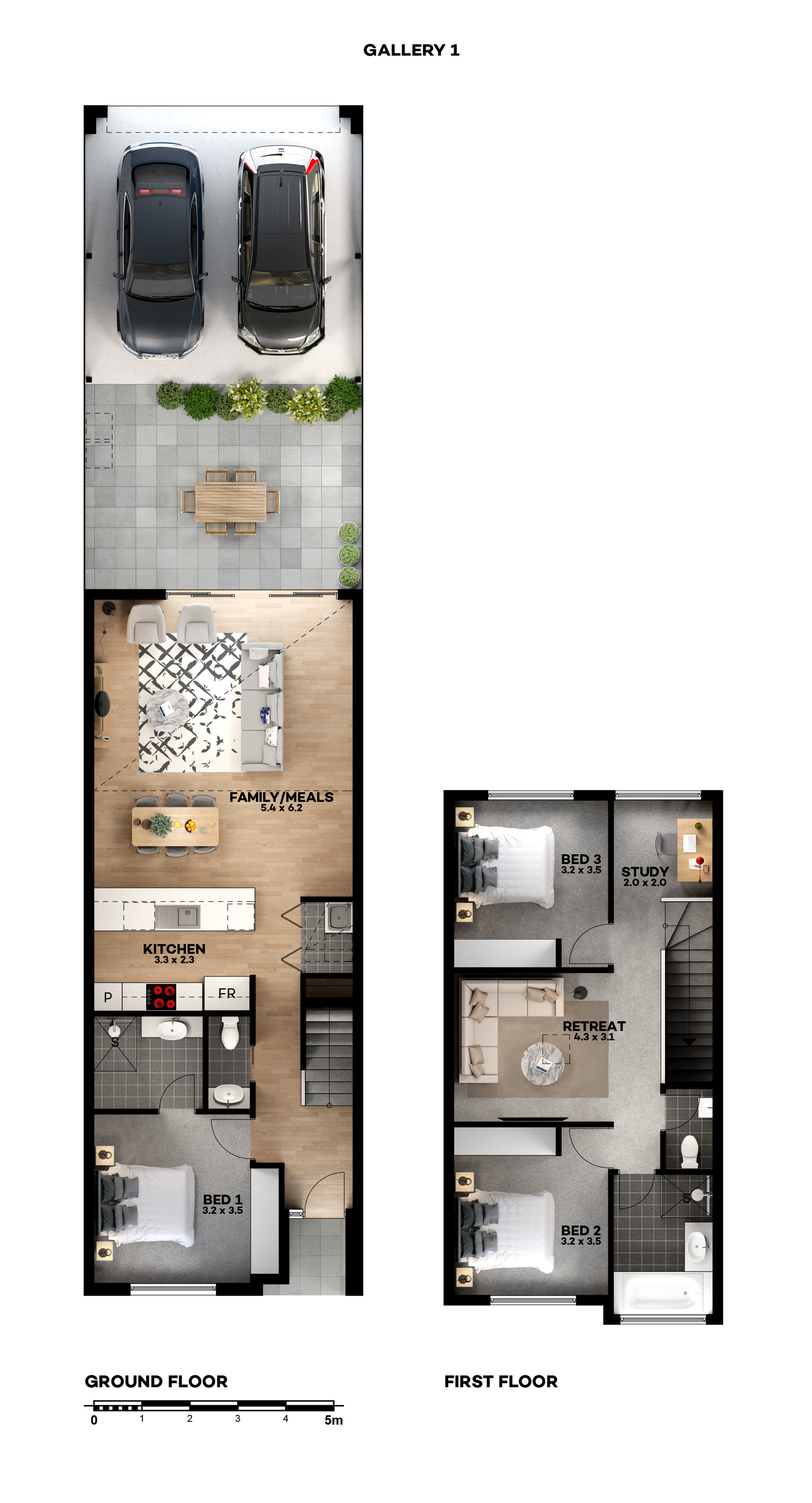 Although compact in design the Gallery 1 is a cutting-edge terrace home, with smart use of space. Its inviting entrance leads to a stunning living, entertainment and dining area opening out onto the courtyard.