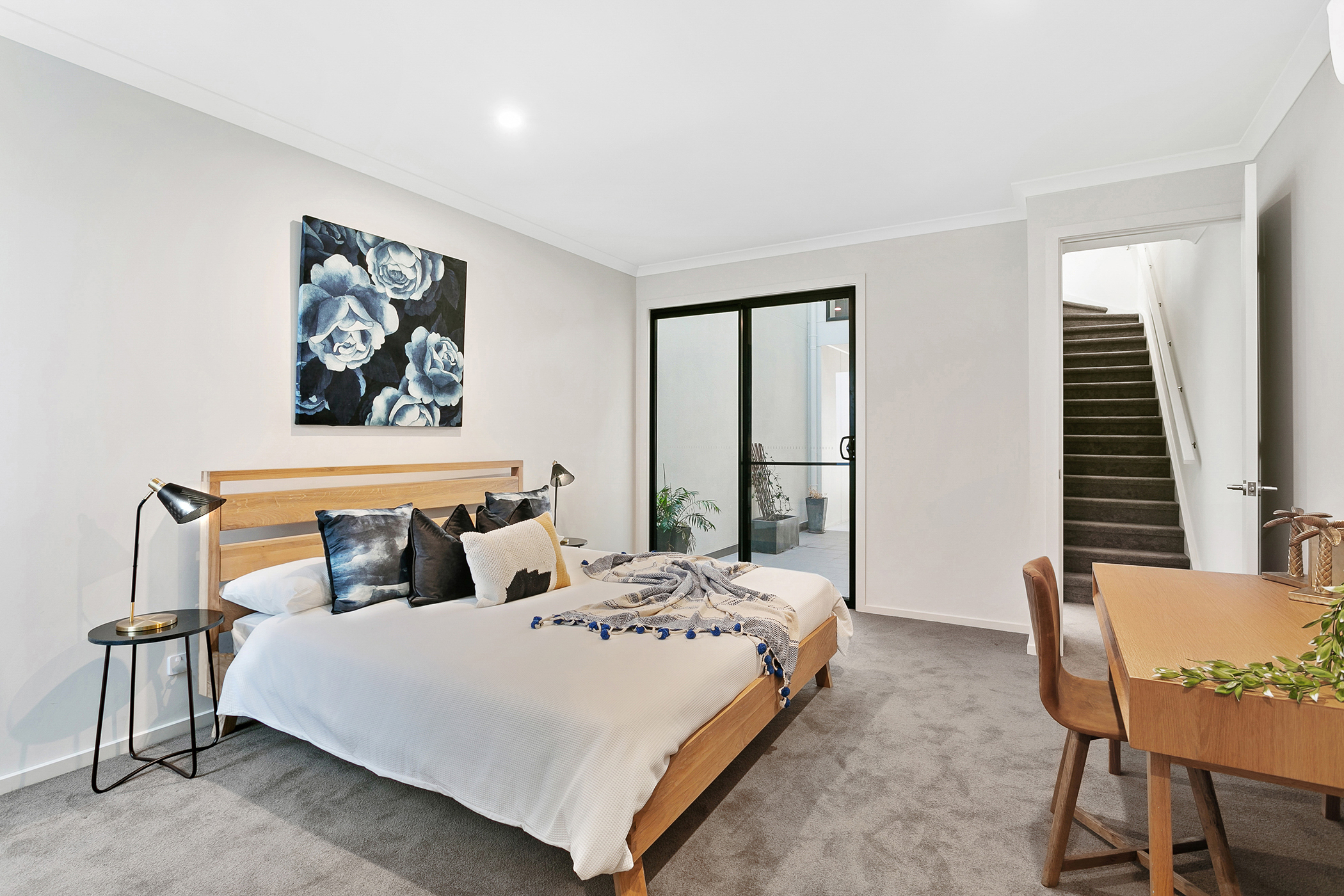 - Exposed timber steps to level 1 stairs and carpet to ground level stairs